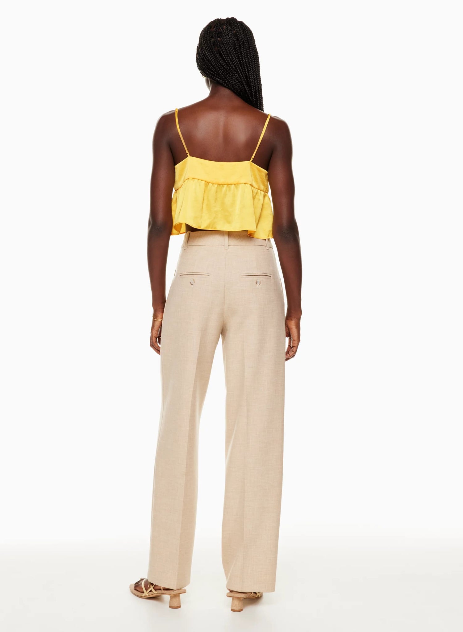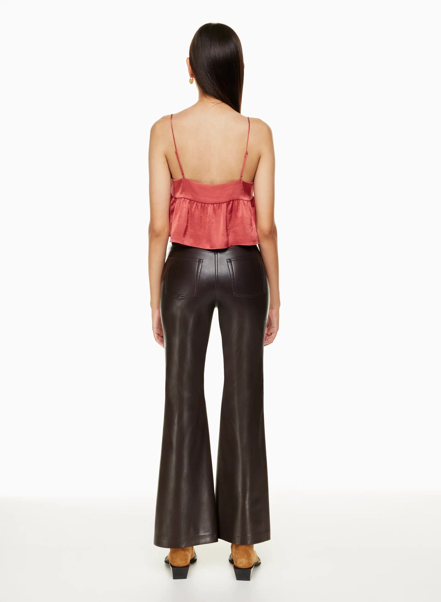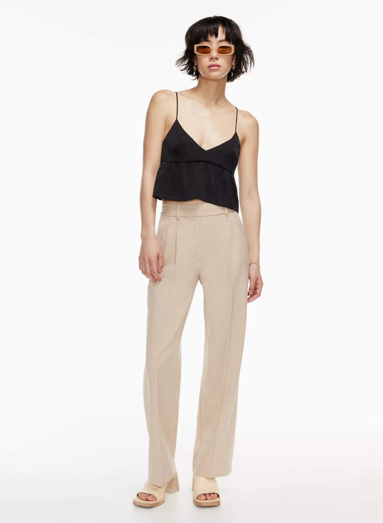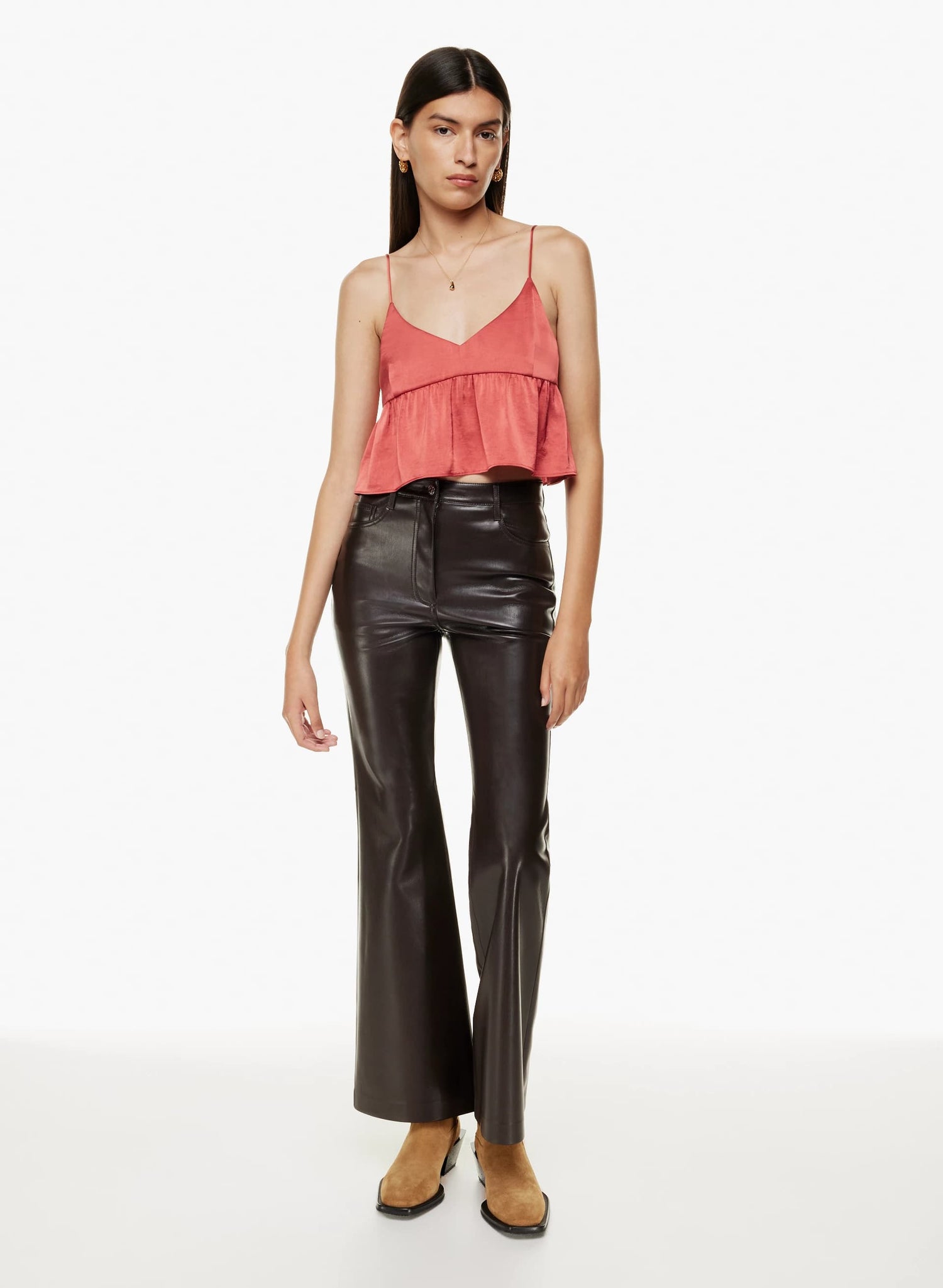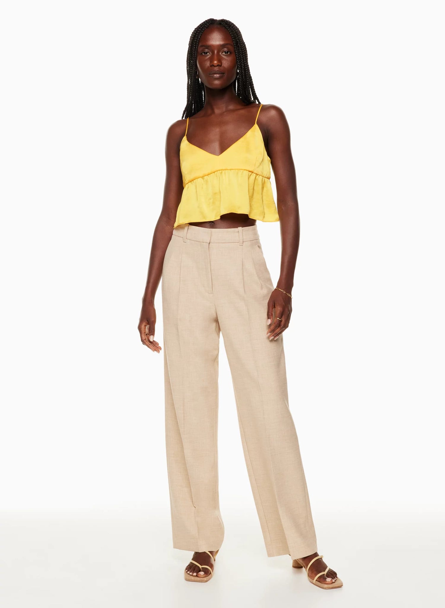 This is a strappy V-neck camisole with a flounced peplum hem and darts for shaping. It’s made from Effortless Satin™ — drapey, lightweight Japanese satin with a glossy look and feel.