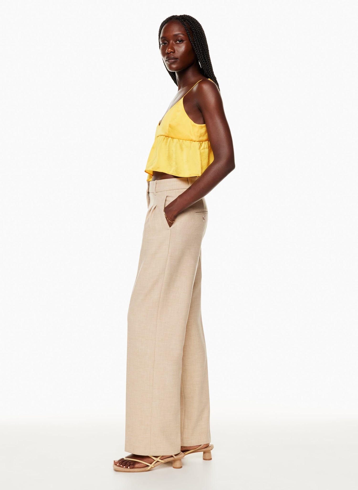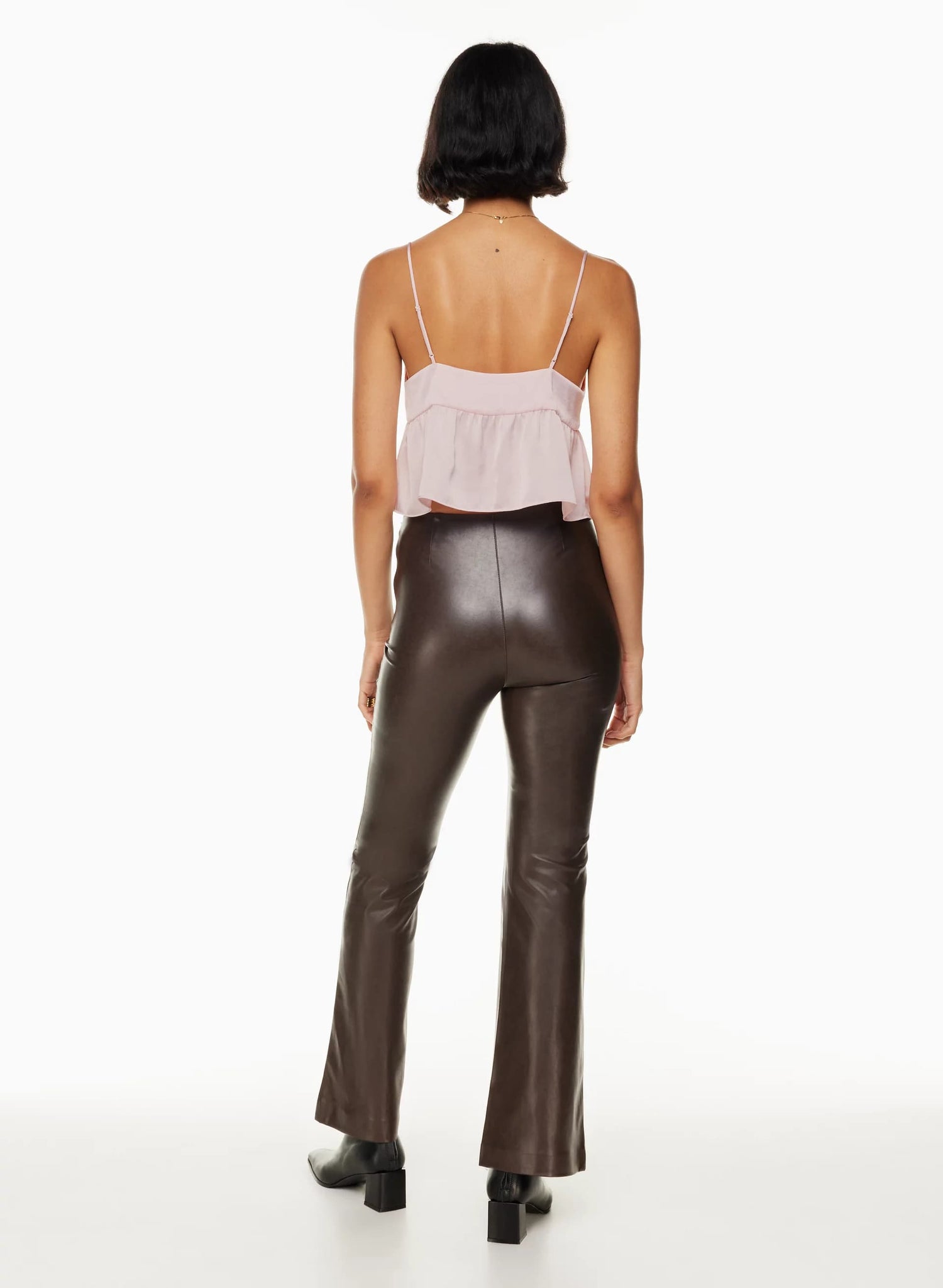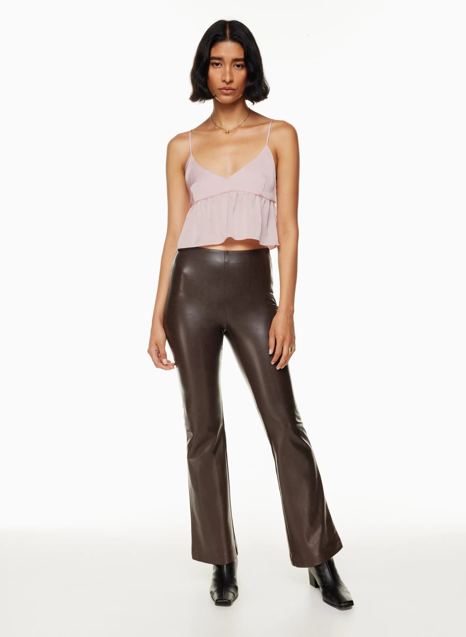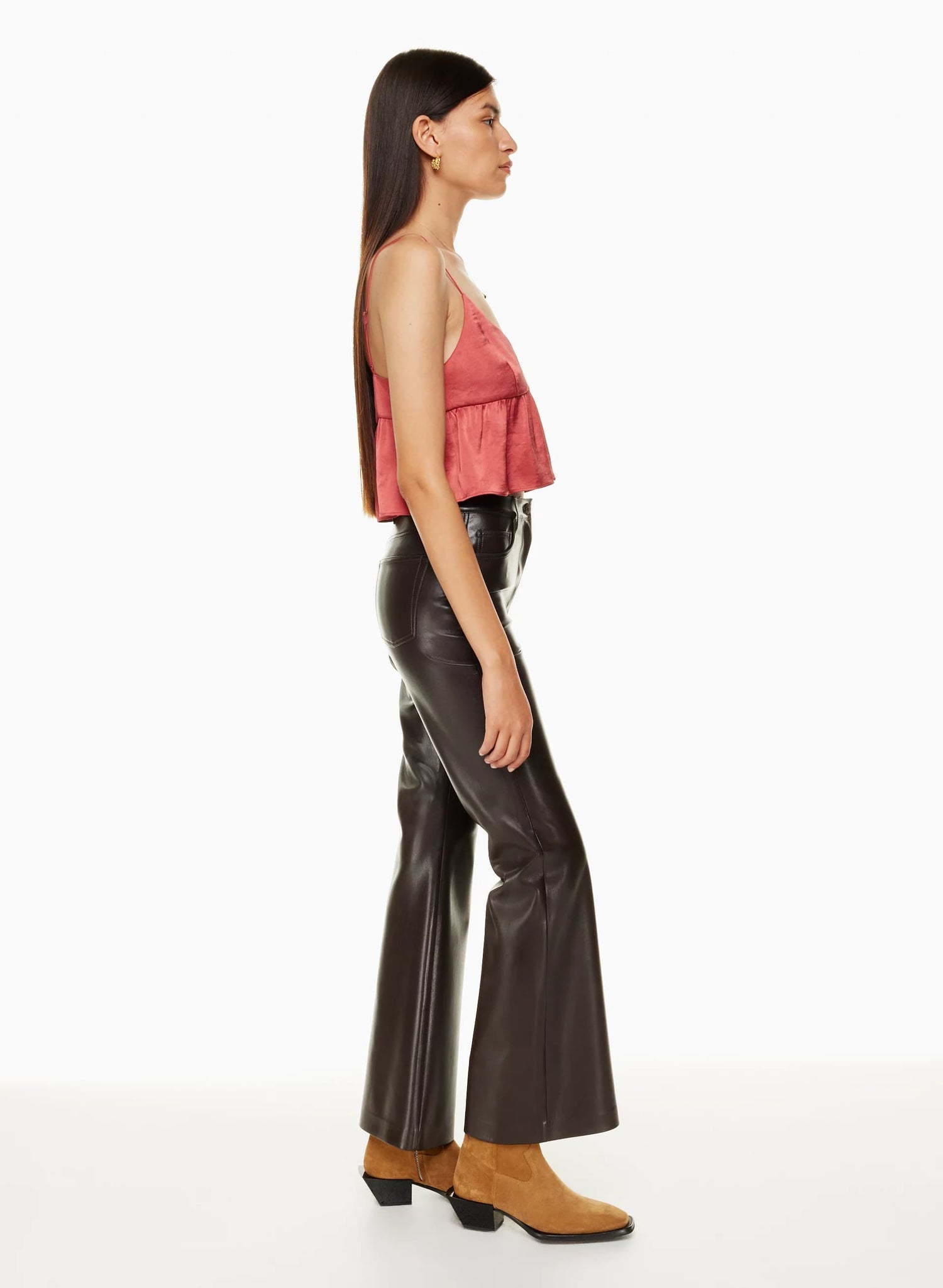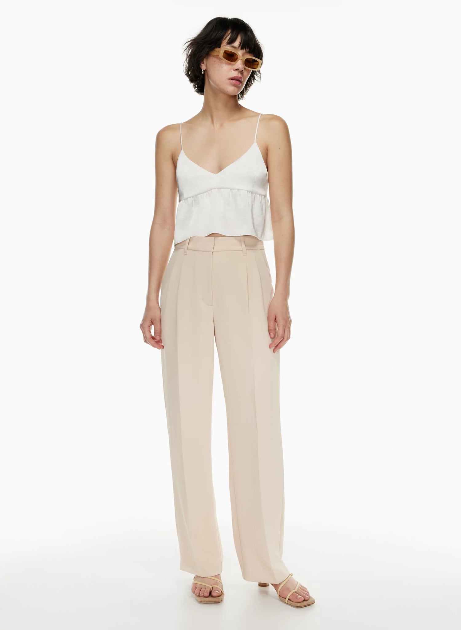 This is a strappy V-neck camisole with a flounced peplum hem and darts for shaping. It’s made from Effortless Satin™ — drapey, lightweight Japanese satin with a glossy look and feel.